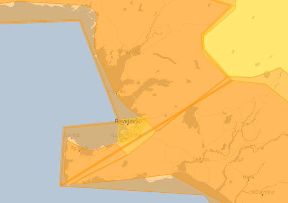 Þessi villa hefur verið til staðar í viðvaranakerfinu um áraraðir og við bendum reglulega á að þetta þurfi að laga. Veðurstofan sendir viðvaranir samkvæmt staðli og birtir svo annað á vefsíðunni sinni og býr þar með til misræmi sem kemur í ljós þegar aðrar síður sem birta viðvaranir eru skoðaðar. Þetta getur orðið til þess að draga úr trausti almennings á veðurspár og viðvaranir. Seinasta myndin er af vef meteoalarm, þaðan fá t.a.m. fjöldinn allur af ferðamönnum úpplýsingar um veðurviðvaranir. Þar sést greinilega bæði appelsínugul og gul viðvörun fyrir höfuðborgarsvæðið allt.