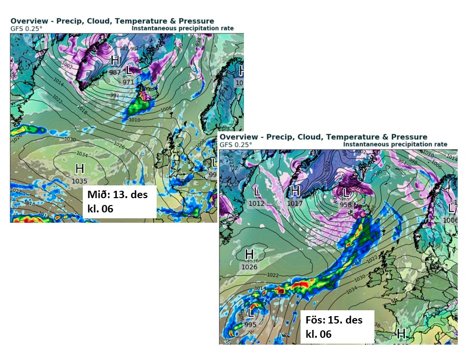 breytingar. Á síðaustu myndinni eru tvö spákort sem sýna lægðir úr suðvestri nærri