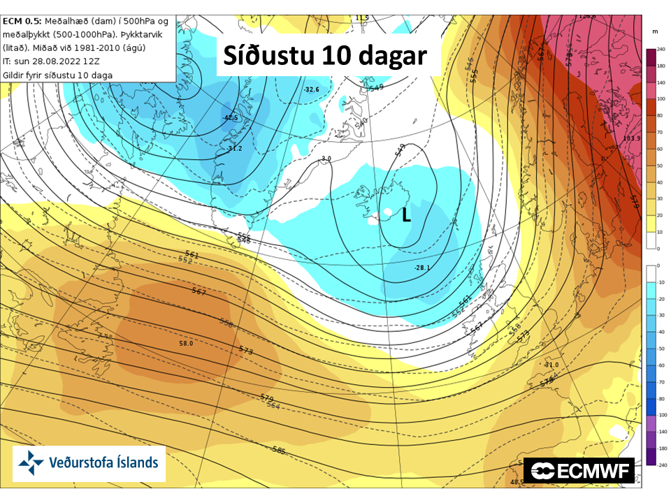 lengi verið viðloðandi og er greinilegt á meðalkortinu síðustu 10 daga (19. til